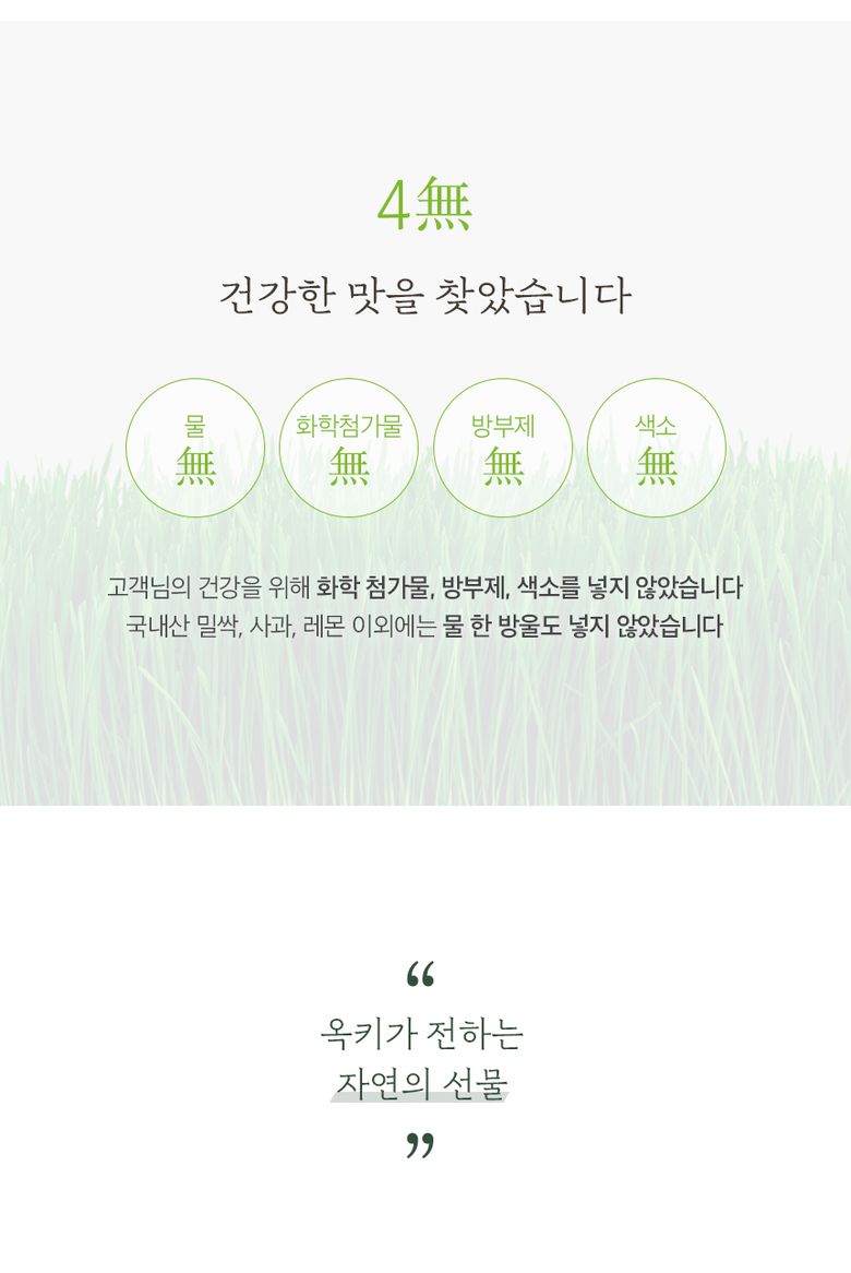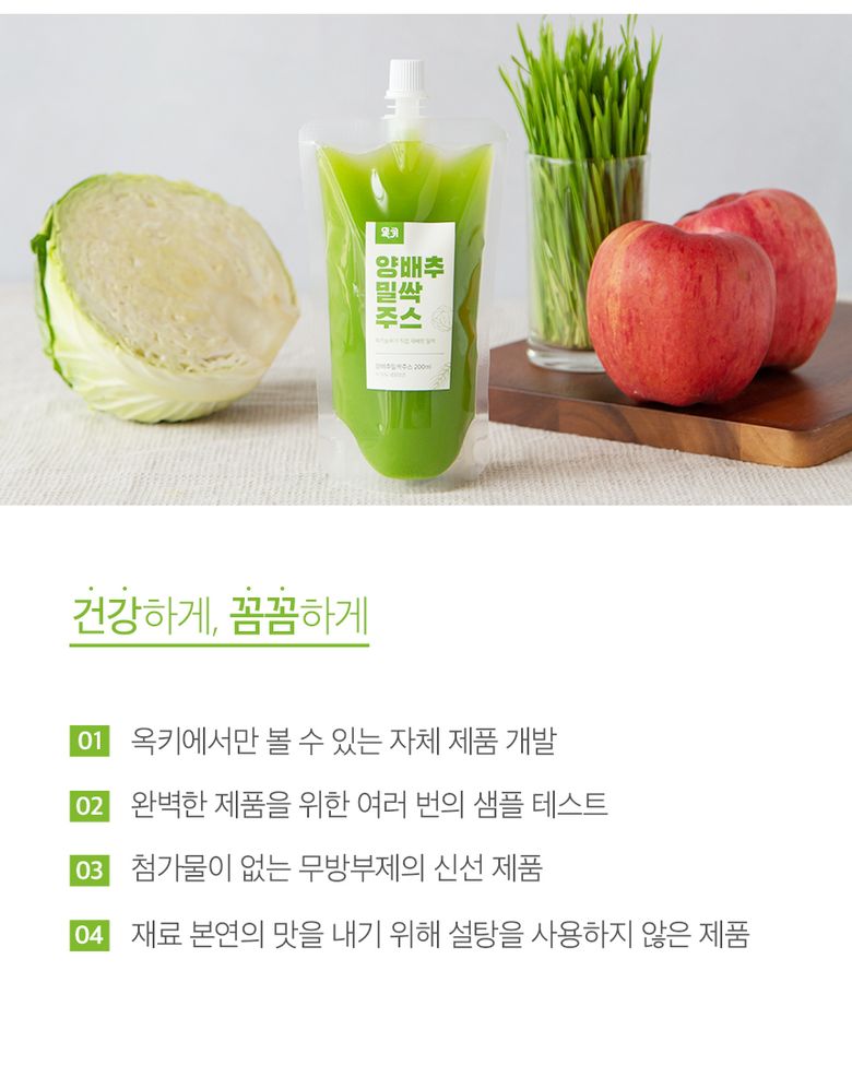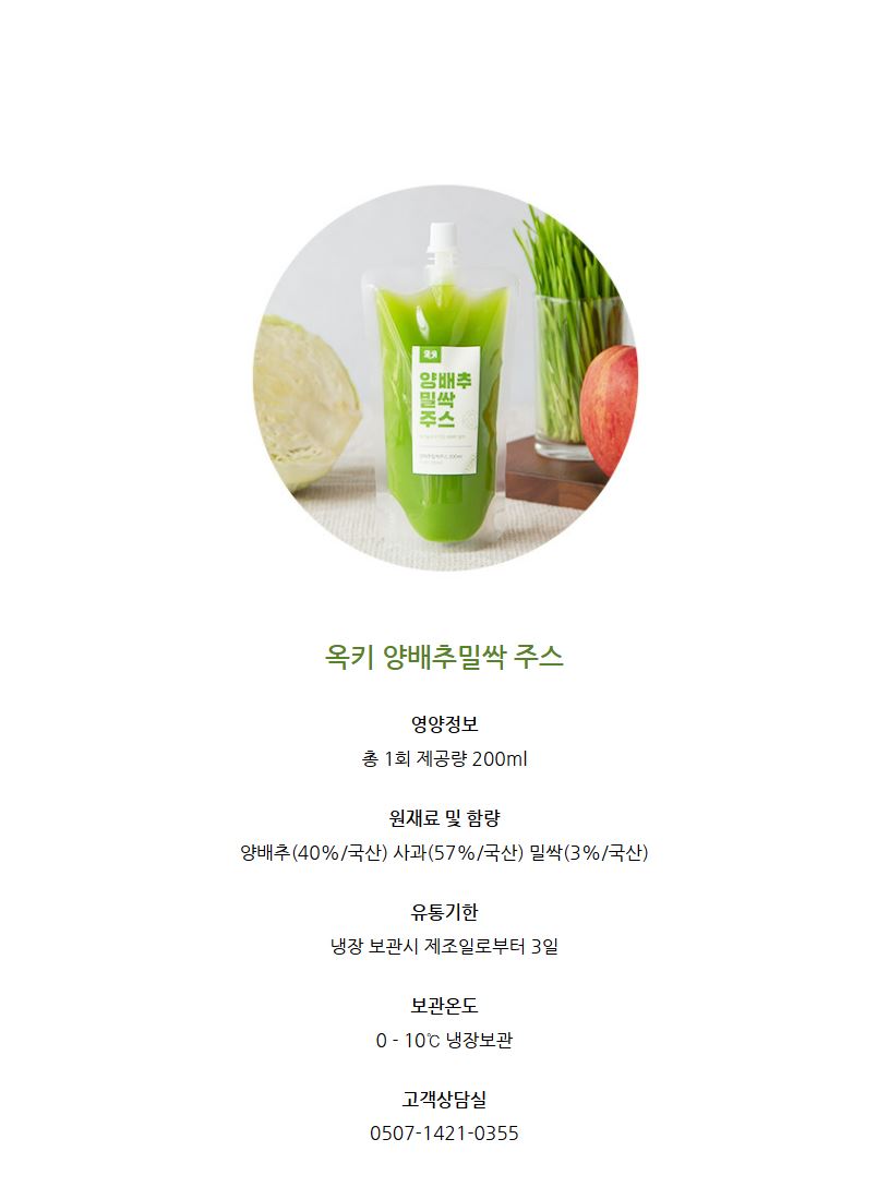 [원산지: 무농약 밀싹(강원도), 사과(경북), 양배추(강원도, 제주 등 제철) ] ]