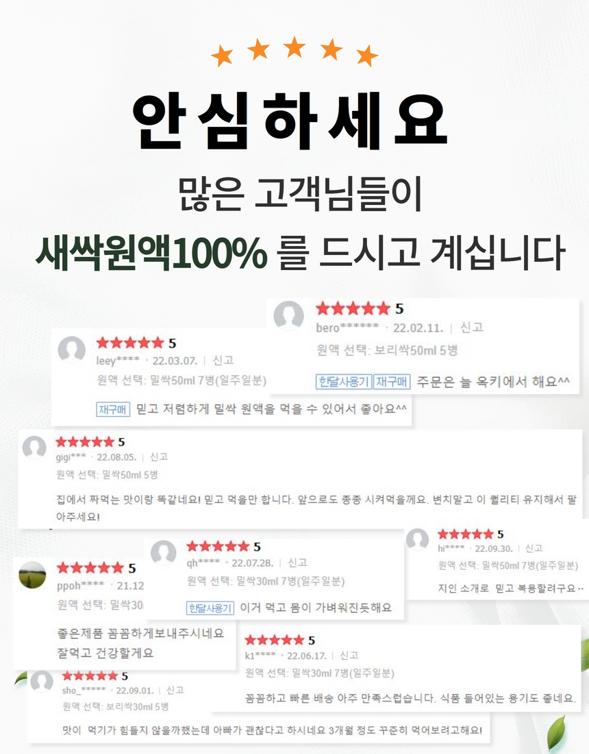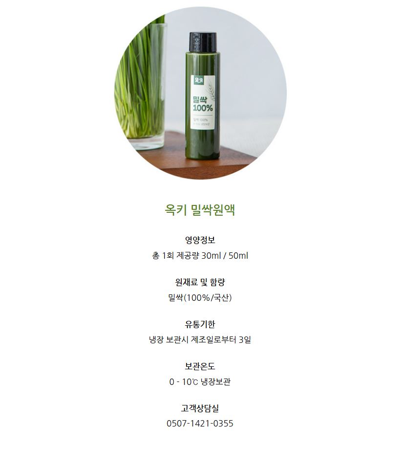 무농약 밀싹으로 착즙하는 100% 착즙원액